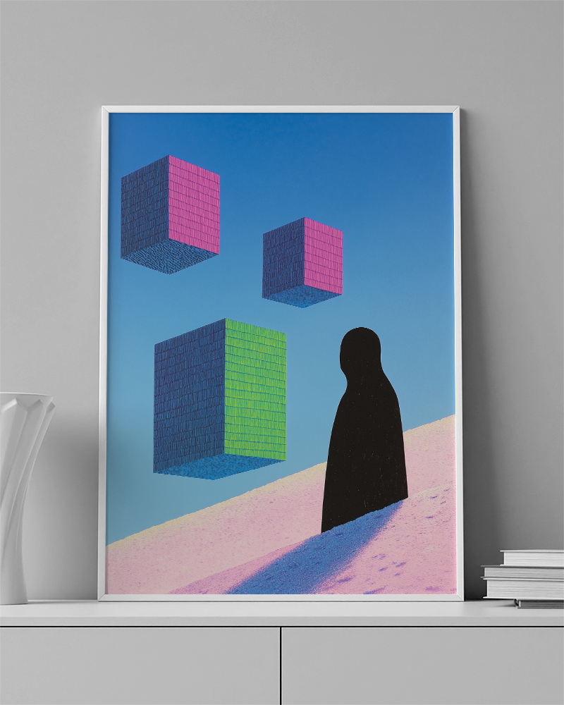 ENG: Floating cubes in a sky space — balancing fantasy and reality.