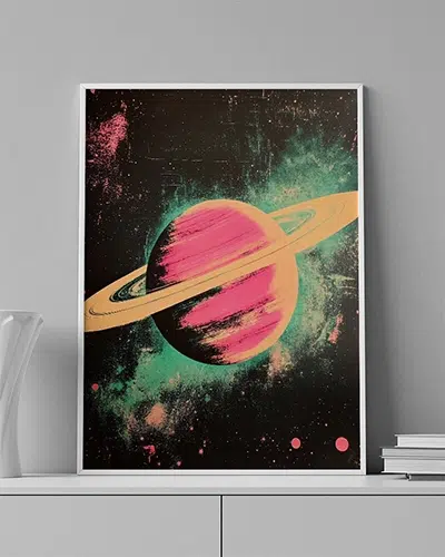 SV: Rosa och gröna månar bildar en livlig kosmisk komposition.