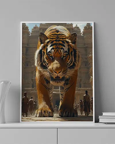 ENG: A mighty tiger stands before an ancient temple — guardian of eternity.