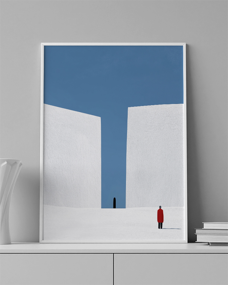 ENG: A lone figure in a white space, embracing silence like an old friend.
