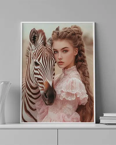 ENG: A girl in pink embraces a zebra — where grace meets wild freedom.