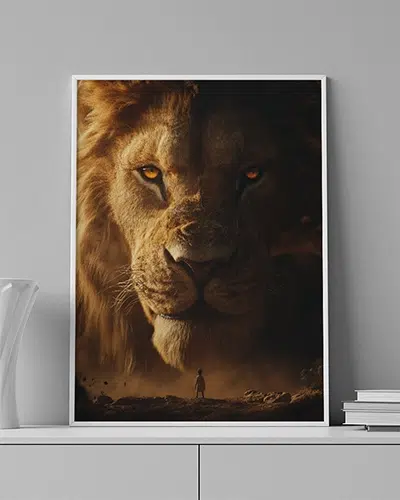 ENG: A majestic lion gazes with golden eyes — the world pauses in reverence.