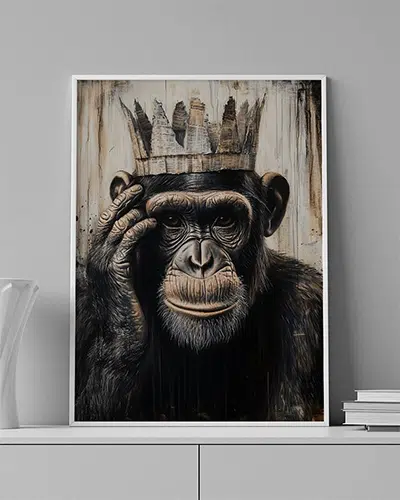 ENG: A monkey resting its hand on its face against a rough background, evoking secrecy and dignity.