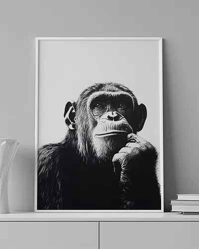 ENG: A monkey resting its chin on its hand, reflecting on life with wisdom and nostalgia.
